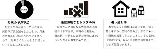 「WiFiBOX」がご好評をいただいている背景に、「(受付カウンターに)並ぶ必要がない」「よく行く商業施設や乗り降りする駅など、自身のタイミングで受け取りや返却ができる」という点があります。レンタル費用も自身で完結するため、「返却基地局までの送料が別途必要」や「カウンターでの受付費用」などが発生することもなく、コストを抑えることが可能です。