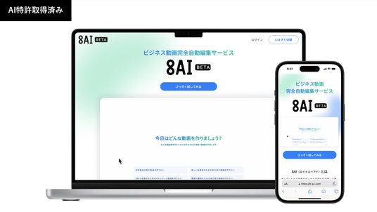株式会社オープンエイト(本社:東京都千代田区、代表取締役社長兼CEO:高松雄康、以下オープンエイト)は、AIビジネス動画編集クラウド「Video BRAIN」(ビデオブレイン)で作成された動画や構成要素など独占的に保有する独自データを生成AIと組み合わせ、ビジネス動画を完全自動で編集するサービスを「8AI」(エイトエーアイ)β版として8月15日(木)より提供いたします。(動画編集に関するAI特許取得済み)