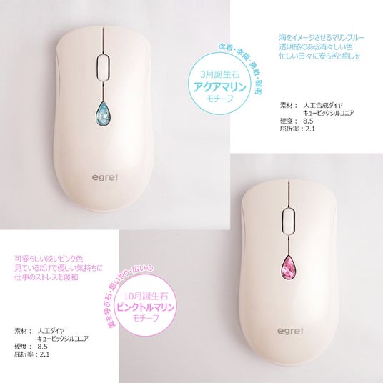 現在販売中の「EGRET」のワイヤレスマウス9種は、「OMOTENASHI SELECTION 2024 日本の優れた商品」を受賞しました。本製品は「EGRET」なかでも人気が高い「EGRET SweetiE」を、さらにかわいく上品にアップデートしました!※EGRETはビジネスハーモニー株式会社の登録商標(第6672768号)です。