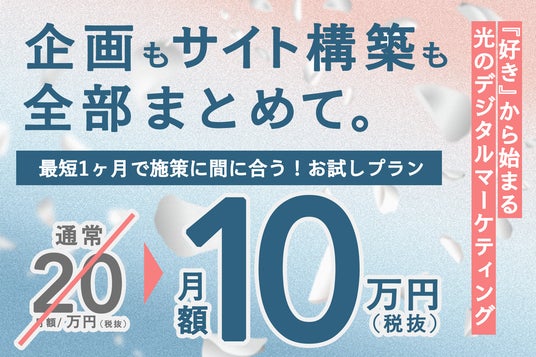 【月額10万円で企画も構築も】『好き』から始まる光のマーケ。最短1ヶ月でマーケティングとクリエイティブの横断を実現する、スタートアップ・新規事業のweb支援パッケージを提供開始。