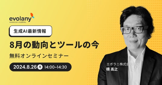 【エボラニ株式会社】2024/8/26(月)14:00~14:30 生成AI最新情報「8月の動向とツールの今」