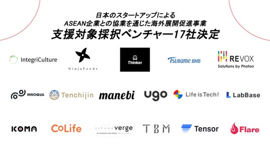この事業は、ASEAN地域における社会課題解決とビジネス創出を目指す日本のスタートアップ企業を支援するプログラムで、2024年6月から7月にかけて実施された厳正な審査を経て、51社の応募の中から選ばれた17社が支援対象として選出されました。