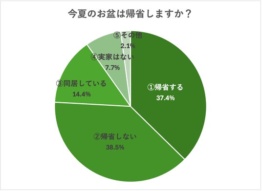 「Q.今年のお盆は帰省しますか?」とお聞きしたところ、全体の37.4%の方が、「帰省する」と回答しました。