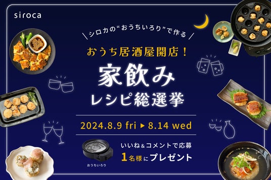 シロカ株式会社(東京都・千代田区)は、本日8月9日よりシロカ公式Instagramにて、夏休みのキャンペーン第2弾として「おうち居酒屋開店!家飲みレシピ総選挙」と題したプレゼントキャンペーンを実施します。
