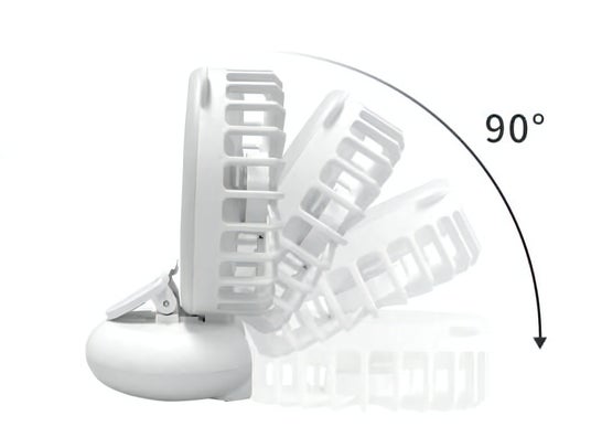 上下に角度を調節でき、首掛けでも卓上でも好きな箇所に風を向けられるからコンパクトでも涼しさを実感