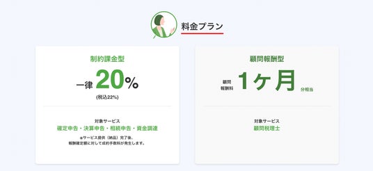 制約課金型のサービスにおいては、提供したサービスの完了後、税理士は報酬の確定額から20%(税込で22%)の手数料をいただいております。