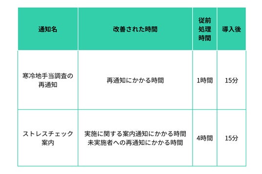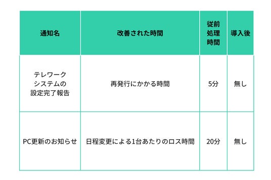 また庁内の通知物をデジタル化することにより、通知内容の認知度が向上し、職員にリマインドをする必要がなくなったことで稼働時間の削減にも繋がりました。