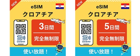 速報JAPAN株式会社(本社: 西東京市、代表: 賀詞)のブランド「DeSiM」は、クロアチアへの渡航を計画している旅行者向けに、多彩なeSIMプランの販売をAmazonで開始しました。DeSiMのeSIMは、1日から30日間の滞在期間に対応するプランが揃っており、データ容量無制限タイプやコストパフォーマンス重視のプランなど、旅行者の様々なニーズに応えます。
