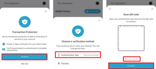 5 二段階認証の設定が完了。Slash Vision Portalに戻り、6桁の値を入力してウォレットにログイン。