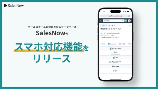「誰もが活躍できる仕組みをつくる。」をミッションに掲げ、セールスチームの武器となるデータベース「SalesNow」を展開する株式会社SalesNow(本社:東京都渋谷区、代表取締役:村岡功規、以下「SalesNow」)は、新たにスマホ対応機能をリリースしました。これにより、顧客訪問前や移動中など、スマホからいつでも企業情報を10秒以内に確認することが可能になりました。Web検索では見つからないSalesNow独自の企業情報をご利用いただけます。