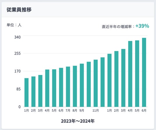 ・従業員数の月次推移:約230万社の従業員数の月次推移をグラフで確認可能。