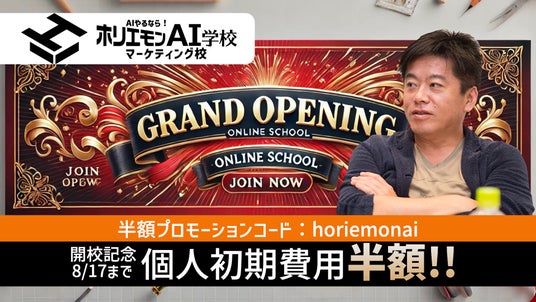 マーケター集合!『ホリエモンAI学校マーケティング校』8/15本日開校。今日から3日間は個人初期費用半額!