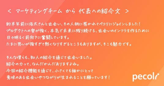 信頼でつながるマッチングアプリpecoli、業界初の友達に紹介文が書ける「かんたん紹介文」機能をリリース