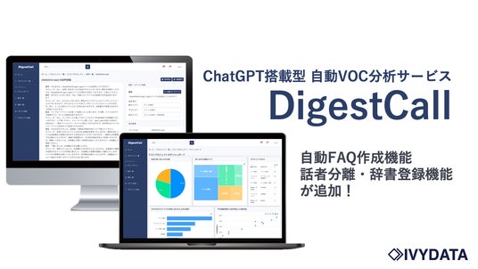 株式会社アイビーデータ(本社:東京都渋谷区、代表取締役 鈴木 航介、以下当社)は、ChatGPT搭載型の自動VOC分析サービス「DigestCall」において、1.自動FAQ作成機能2.話者分離・辞書登録機能をリリースしました。