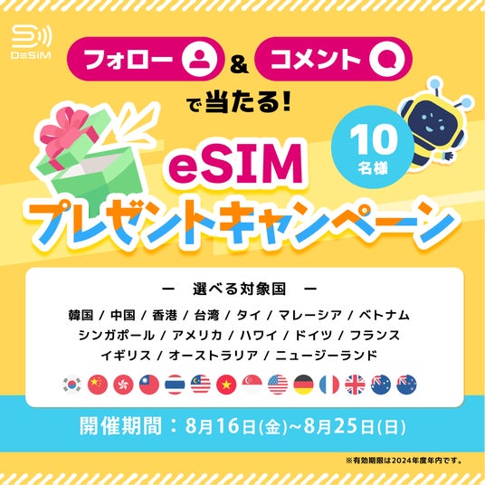 eSIMプレゼントキャンペーン開催!DeSiMが8月16日から25日まで、選べるeSIMプランを10名様に無料提供