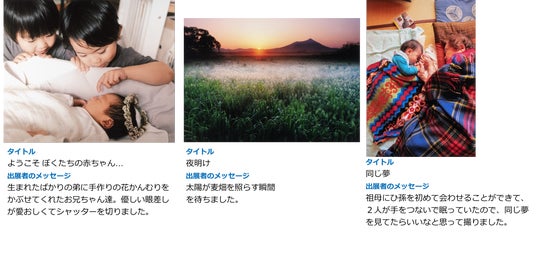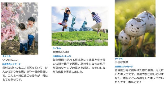9月17日(火)~12月25日(水)の間、「“PHOTO IS”想いをつなぐ。あなたが主役の写真展2024」公式サイト内(https://photo-is.jp/)にオンライン展示サイトを設置し、応募作品(※6)を公開します。本展示サイトでは、作品カテゴリやキーワード、出展者のお住まいの都道府県などから作品を検索が可能です。共感した作品に対する感想や想いを記した「絆メッセージ」を出展者に向けて投函できる「絆ポスト」を設けています。