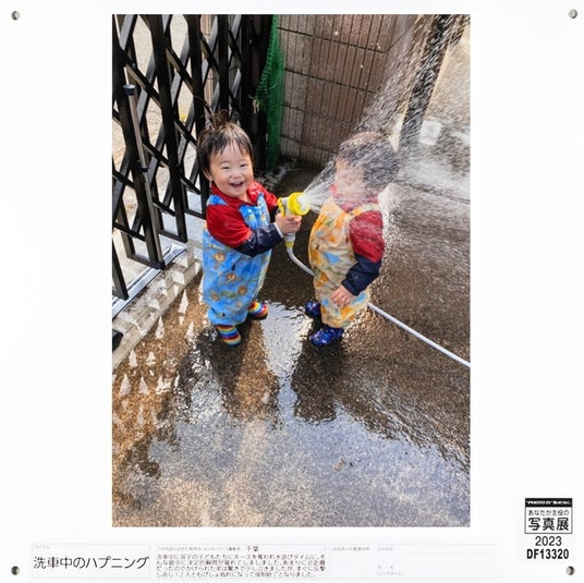 洗車中に双子の子どもたちにホースを奪われ水遊びタイムに。そんな最中に決定的瞬間が撮れてしまいました。あまりに近距離だったのでかけられた弟は驚きで少し泣きましたが、すぐに反撃し返し!2人ともびしょぬれになって強制終了となりました。