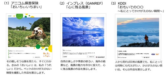 Instagramで投稿いただいた作品を10のカテゴリで東京・名古屋・大阪会場に展示します。風景や旅、家族やペットなどバラエティ豊かな作品が多数集まりました。
