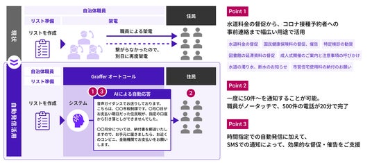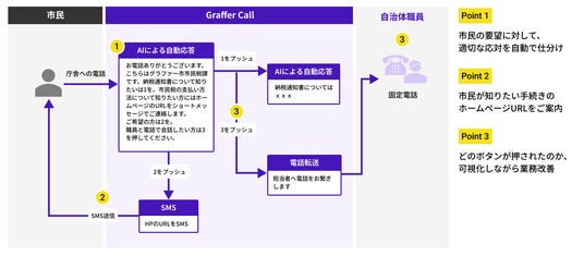 企業・行政機関における業務のデジタル変革を手掛ける株式会社グラファー(本社:東京都渋谷区、代表取締役:石井大地、以下「当社」)は、AIとプッシュダイヤルを活用して、庁舎への受電応対業務、市民・事業者への発信業務を効率化するサービス「Graffer Call」の提供を開始しました。これにより、自治体職員の電話応対における業務負担と心理的負荷を軽減し、さらなる市民サービスの向上を実現します。