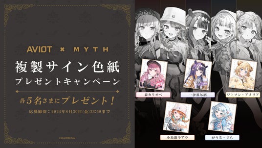 さらに、本日より本コラボの描きおろしイラストを使用した『森カリオペ』『小鳥遊キアラ』『一伊那尓栖』『がうる・ぐら』『ワトソン・アメリア』の複製サイン色紙を各5名様にプレゼントする特別キャンペーンを実施。