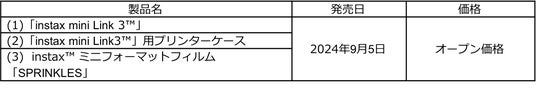 富士フイルム株式会社(本社:東京都港区、代表取締役社長・CEO:後藤 禎一)は、スマートフォンの画像をカードサイズのチェキ(TM)フィルムにプリントできるスマホプリンター“チェキ”「instax(インスタックス) mini(ミニ) Link(リンク) 3(スリー)(TM)」(以下「Link 3」) を2024年9月5日に発売します。