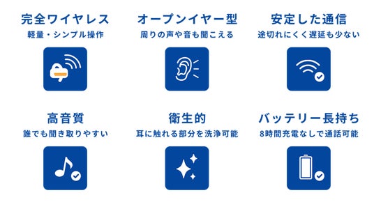ベースとイヤーセット以外に必要となる機器はなく、使いたい場所に持ち運ぶことができ、いつでもどこでも手軽にご利用いただけます。