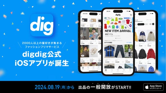 ファッションフリマサービス「digdig(ディグディグ)」を運営する株式会社FUNEE(ファニー | 本社:東京都渋谷区、代表取締役社長:楊 承峻、以下FUNEE)は、「digdig」公式アプリ(iOS)をリリースしたことをお知らせいたします。また、2024年8月19日(月)より「digdig」における出品の一般開放もスタートいたしました。