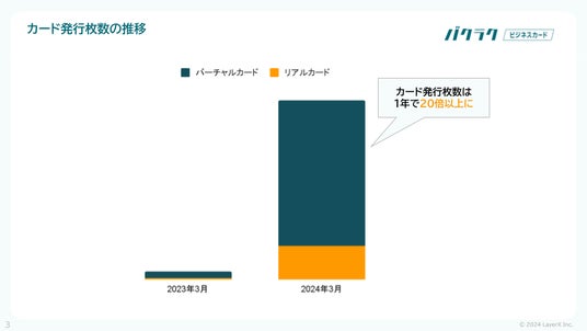 バクラクビジネスカード、2周年。発行枚数は昨年比20倍以上に成長し、従業員へ安心して配付できる法人カードに