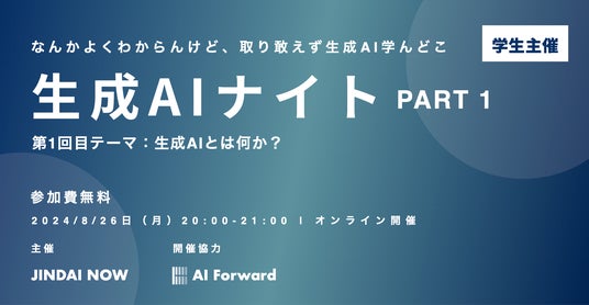 合同会社AI Forward(本社:東京都中央区、代表:寺園諒雅、以下「当社」)は、学生や社会人を対象とした生成AI入門勉強会「生成AIナイト」を開催することをお知らせいたします。