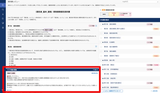 これによって、検知したリスクに対しても自社基準で解説できるようになり、より自社の審査基準や実務に即して、条文を修正するかどうかの判断ができるようになります。