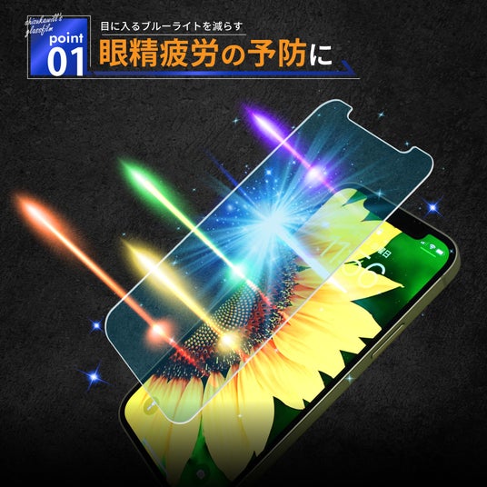 仕様:ブルーライトカット・硬度9H・指紋軽減・飛散防止・付着防止・防汚・耐傷性