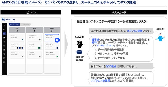 ソルビファイ株式会社(本社:東京都港区、代表取締役:CEO湯淺元祥/COO染谷凌大)は、AIによるSolvifAI上のプロジェクトデータ分析とタスク代行機能を2024年9月より提供開始いたします。