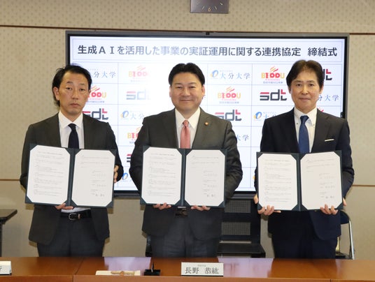 別府市、大分大学医学部、SDT株式会社での生成AIを活用した事業の実証運用に関する連携協定