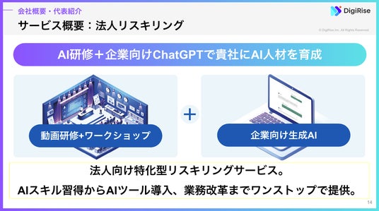 ■AI研修(動画学習+ワークショップ)「法人リスキリング」