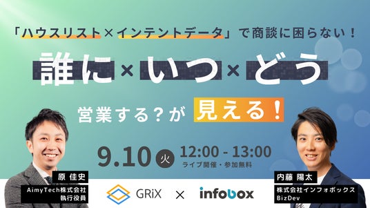 【9/10セミナー開催】誰に・いつ・どう営業する?が見える!「ハウスリスト×インテントデータ」で商談に困らない!