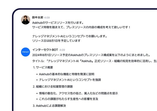 生成AIを活用したDX支援に特化して事業展開しているインターセクト株式会社(本社:東京都渋谷区、代表取締役:松本拓哉 以下、インターセクト)は、独自の探索システムXAGにより社内情報探索に特化したナレッジマネジメントAIツール「Askhub」に、個社ごとのクラウド環境にデプロイして利用できる新しいプランを提供開始します。