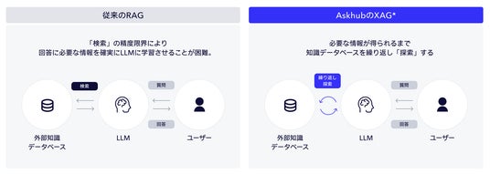 XAGでは、単なる「検索」にとどまらず、知識データベース内の情報を繰り返し「探索」し、最も関連性の高いデータが見つかるまでプロセスを続行します。これにより、生成AIが学習する情報の質が格段に向上し、より正確で信頼性の高い回答を提供できるようになりました。