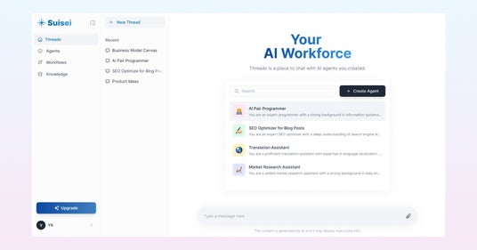 株式会社Midwave(本社:東京都渋谷区、代表取締役:片野 由勇岐、以下当社)は、2024年8月20日より、AIエージェントを簡単に作成する生成AIプラットフォーム「Suisei」の事前登録を開始しました。
