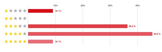 アンケートによれば、GMO外貨のオプトレ!口座に対する評価は分かれる結果となった。4点を付けた投資家の割合が45.5%で最も高かった一方で、最高評価の5点と最低評価の1点を付けたのが共に9.1%となった。