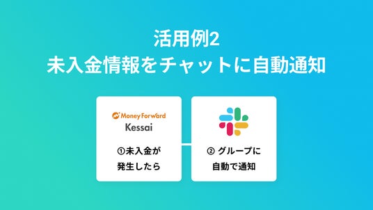 ご利用のチャットツールと連携して、マネーフォワード ケッサイ上で未入金が発生したら自動でチャット通知を送ることができます。これにより、スピーディな情報共有が可能になります。