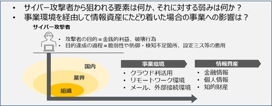 金融機関が備えるべきサイバーセキュリティ管理については、自組織の情報資産に対する脅威を分析して対策を進めるといった「リスクベースアプローチ」の考え方が浸透していますが、最近では、業務効率やBCPの観点でITサービスを利用する機会が増加するなど、IT・システム部門の管理範囲が広がっています。