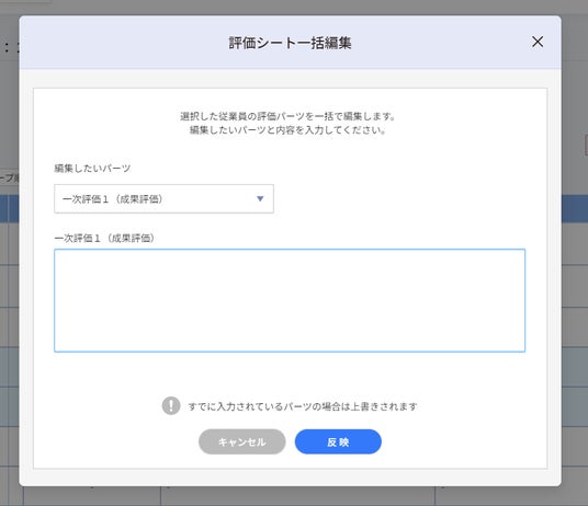 本機能実装で、複数人の評価シートを一覧で確認し、その評価内容を一覧画面上から編集/シート確定/差し戻しができるようになりました。また、一次評価者が記載した評価内容に差異がない場合、ニ次評価者は同様の評価内容を踏襲し、一括で反映することができます。