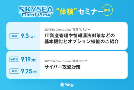 「SKYSEA Client View」 9月開催ハンズオンセミナー(東京・大阪・名古屋)