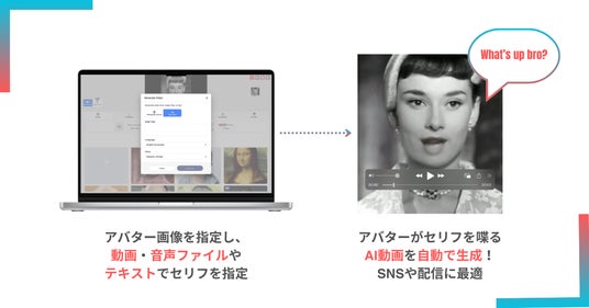 今回リリースされた新機能では、ユーザーがアバターの画像と喋る内容を指定するだけで、そのアバターが指定された内容を話す動画を自動で生成できます。アバターにはリアルな動きが加わり、少ない手間でプロフェッショナルな動画を作成できるのが大きな魅力です。プレゼンテーションやコンテンツ制作、SNSでの活用に最適なツールとなります。