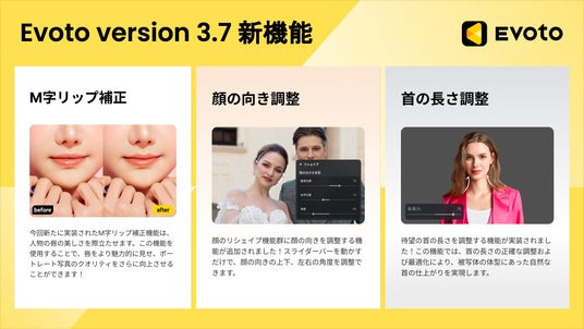 AIレタッチソフト「Evoto」、M字リップ補正など9つの新機能を追加した新バージョン3.7を提供開始