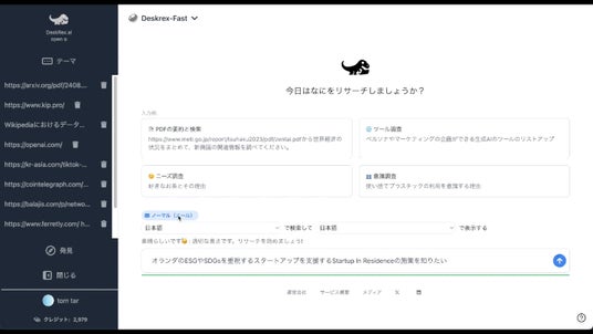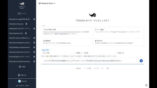 株式会社Deskrex(本社:東京都渋谷区、代表取締役CEO:冨田到、以下Deskrex)は、AIを活用して市場調査のデスクリサーチを自動化するツール「Deskrex App(デスクレックスアップ)」のオープンアルファ版の提供を2024年8月21日(水)より開始することをお知らせいたします