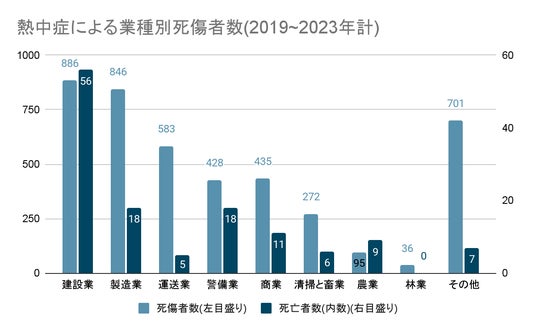 【出典】厚生労働省「令和5年 職場における熱中症による死傷災害の発生状況(確定値)」