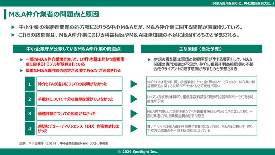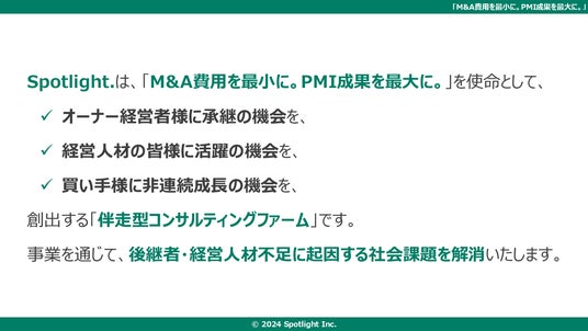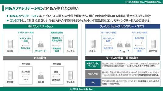 株式会社Spotlight(東京都渋谷区)(以下「弊社」)は、この度、中小企業M&A領域において、"利益相反を排除し""M&Aコストを削減する"コストパフォーマンスに優れた"M&Aファシリテーションサービス"の提供を開始することをお知らせします。