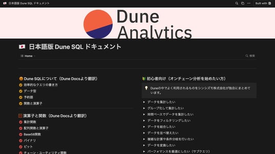 synschismo Inc. (Headquarters: Tokyo, Japan; CEO: Hideyuki Akagawa) has officially released the Japanese documentation for the on-chain analysis tool Dune. This documentation includes a comprehensive list of functions essential for using Dune SQL and serves as a valuable resource for Japanese blockchain developers and analysts. By highlighting key functions for beginners, we aim to create an environment where many Web3 users can effectively leverage on-chain analysis.