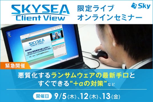Sky株式会社は、クライアント運用管理ソフトウェア「SKYSEA Client View」を活用した情報漏洩対策やIT資産管理などについてご紹介する「SKYSEA Client View 限定ライブ オンラインセミナー」(受講費無料)を随時開催しています。